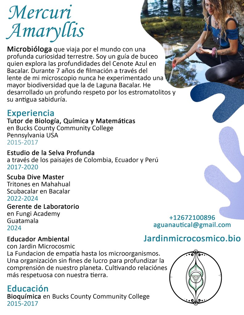 Estudio observacional independiente y autodirigido de los diferentes estromatolitos de la laguna. Buceo frecuente en el Cenote Azul y muestreo de estromatolitos únicos de aguas profundas.